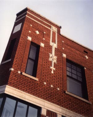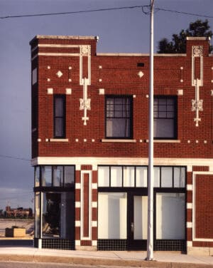 The building’s distinctive “flatiron” (triangular) shape was set forth in 1903 when the Oklahoma City streetcar system laid tracks on a diagonal, angling to and from the turnaround at Stiles Circle (Oklahoma’s first city park, highlighted today by the Beacon of Hope in OKC’s Innovation District and named for lawman and pioneer settler, Captain Stiles). The short, diagonal street was named Harrison Avenue, a popular choice of the era in many American towns.