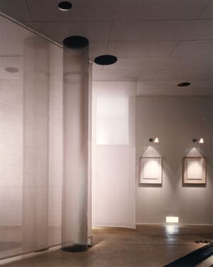 • High-tech nylon fabric is used as air supply ducts in the studio. It “breathes” as supply air is discharged into the space.