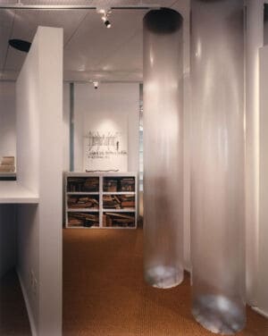 A bare bulb hanging from the ceiling at the “nose” of the building that emits the “energy” of the building. It remains on, 24/7 and represents the firm’s promise of original ideas.