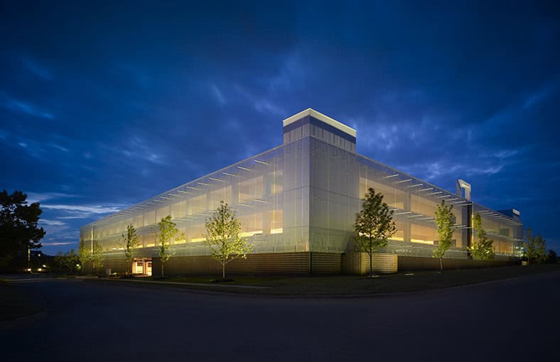 “The often routine commission of a suburban office building/attached parking garage is elevated to a remarkable level of architecturlal quality and user experience. The thoroughness of the architectural detailing was flawless. The intration and impact of the lighting is stunning.”