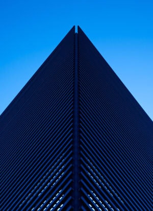 A water-retention pond became an elegant fountain. The handsome, charcoal-colored (manganese) brick exterior set off a wave of admiring local imitators. The corner windows — “shop windows” — are for retail display, with steel and glass that serves as a light, airy background for merchandise or messages. The wrap-around windows are an attraction, yet they don’t reveal all to passing street traffic. The surprise stirs curiosity that draws people in, where they find storefronts and can park to explore and enjoy one-of-a-kind retail and dining options at an inviting “human” scale.