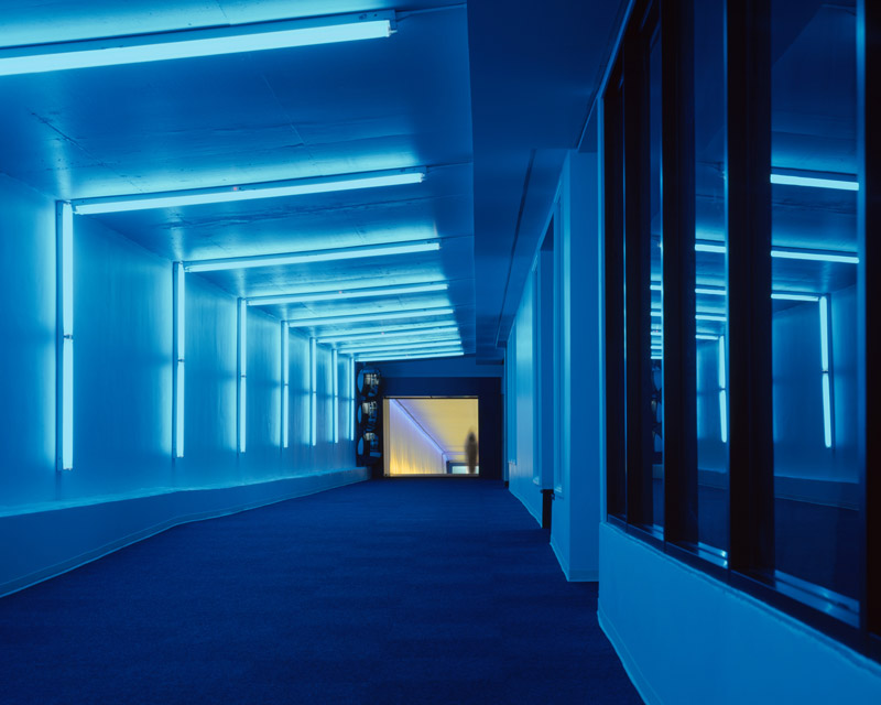 The City of Oklahoma City chose Rand Elliott Architects to tackle the renovation on a shoestring budget. It was a transformation inspired by colored lights that inject energy and appeal to the walkways and guide color-coded navigation.